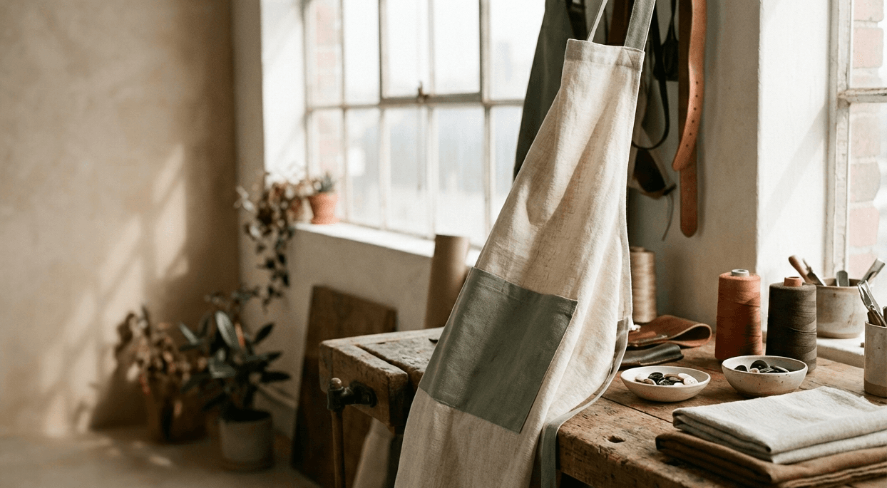 Sunny Sarapia es un pequeño taller donde cosemos delantales, y textiles para el hogar a mano. Cada pieza se hace con cuidado y con telas de calidad, para que tengas algo único y duradero.